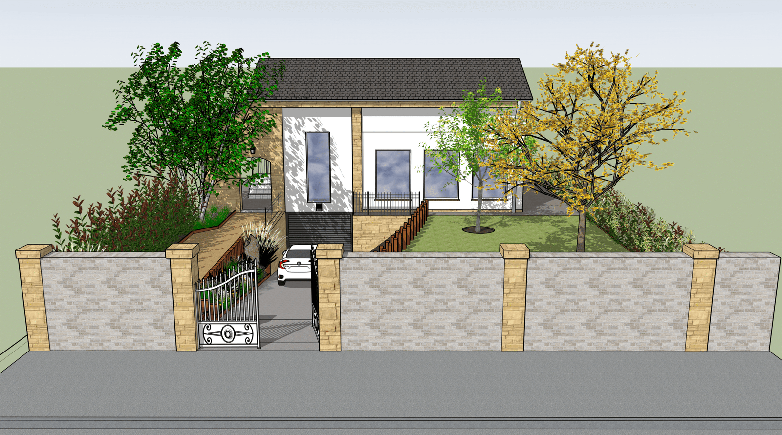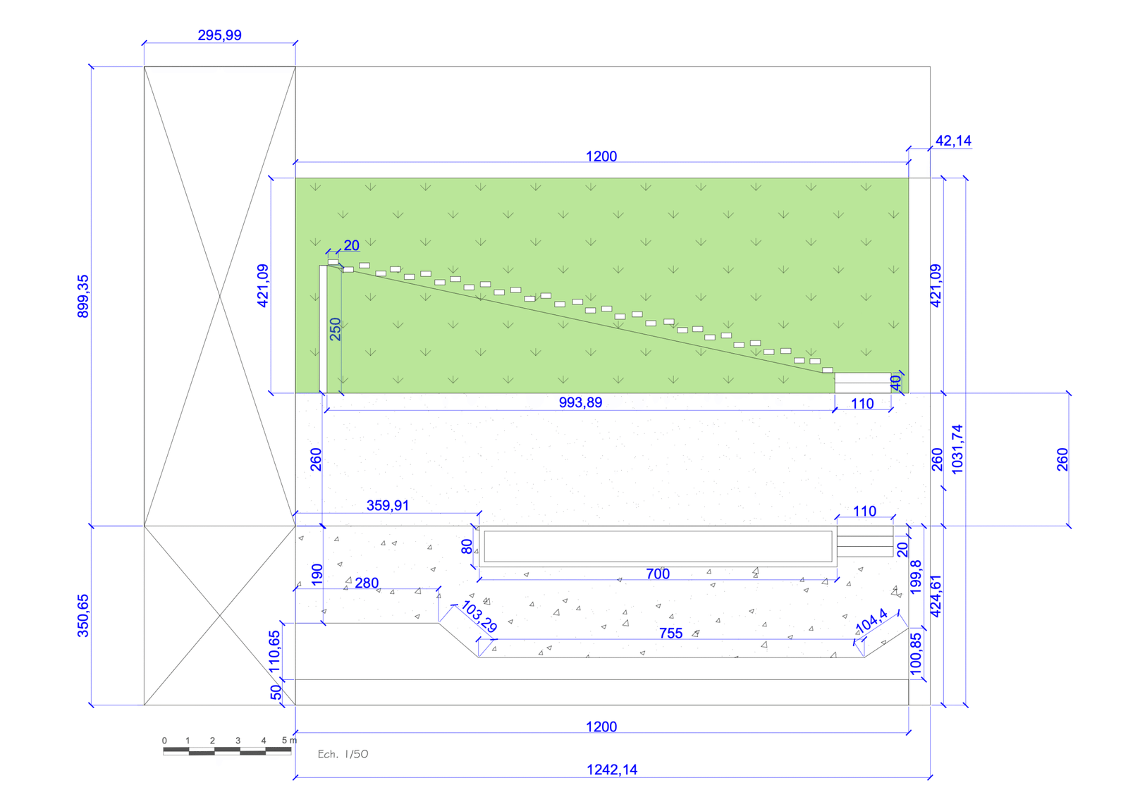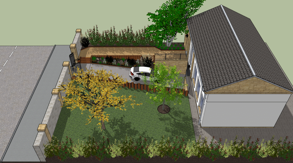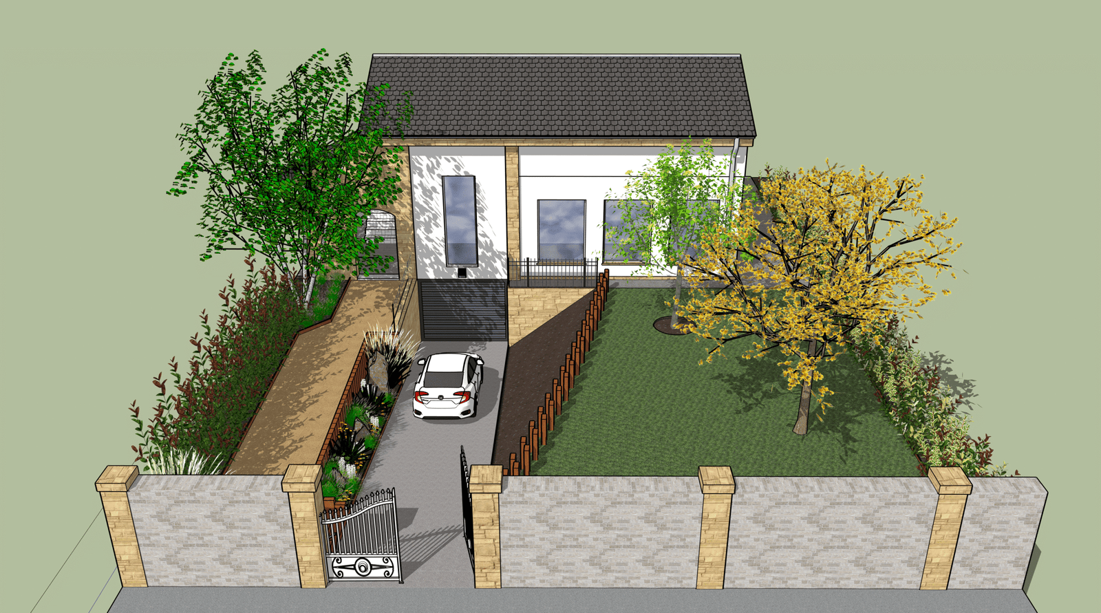 Souhaits du client :restructurer ces talus et réorganiser l’arrivée depuis la rue afin d’offrir un accueil plus cohérent et chaleureux, tout en restant en dialogue avec la topographie de la propriété.
