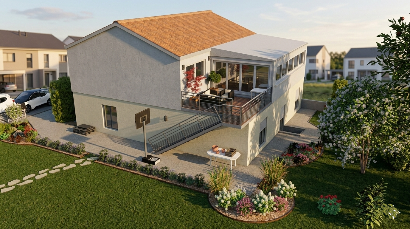 Ce projet, issu d’un mémoire de fin d’études, a pour cas d’étude une maison familiale située à Metz, dans le quartier de l’Ancien Moulin. La propriété de 550 m² bénéficie d’un cadre naturel privilégié, en lisière de parc municipal et à proximité de la forêt.